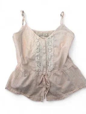 Abercrombie & Fitch Blush-Tan Striped Lace-Trim Peplum Cami
