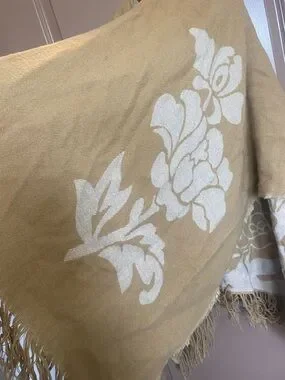 29 Palms Tan Floral Fringe Wrap Poncho (Reversible)