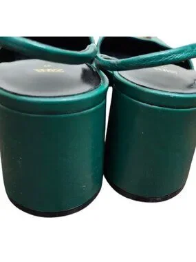 ZARA Green Leather Slingback Heels Gold Medallion Block Heel Women’s EU 41 US 10 BOX 4