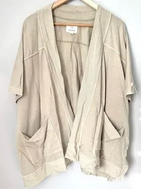 OFFLINE by Aerie Tan Oversized Open Short Sleeve Cardigan Jacket with Pockets