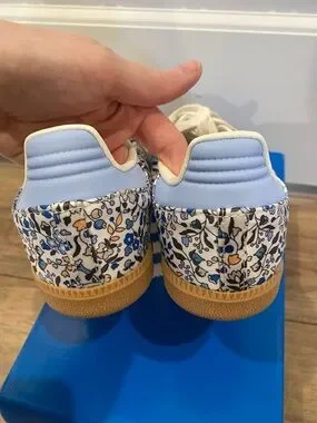 Never worn Adidas Samba Liberty London light blue floral. Size 6.5 youth is equivalent to size 8 women’s. Smoke free home!