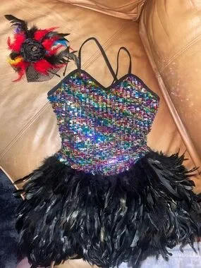 Curtain Call Broadway Dance Costume ASM Sequin Feather Jazz Tap Solo Competition