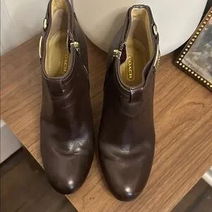 Coach Brown Leather Ankle Boots Horsebit Heel Booties 7.5B Preppy Equestrian