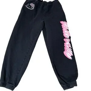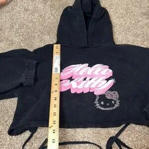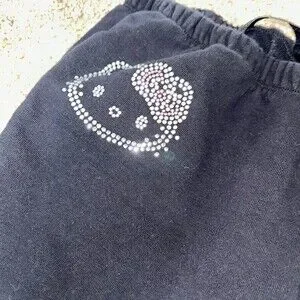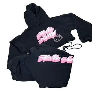 Hello Kitty sweatsuit cropped top and joggers rhinestone black/pink/solver SZ XS