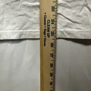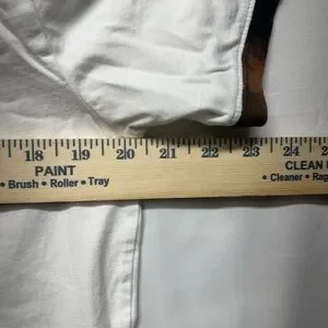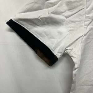 • Bleach stain under arm on trim of shirt. Since it’s under arm hard to see when worn (shown in photos).