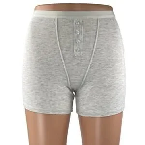 WeWoreWhat Women's Gray Rib Knit High Waist Button Boxer Lounge Sleep Shorts S