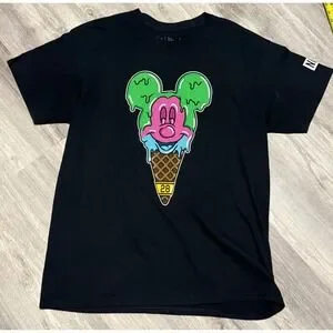 Keywords: Disney, Mickey Mouse, ice cream, graphic tee, mens t-shirt, black tee, Neff, cartoon, character tee, casual wear, unisex, short sleeve, crew neck, Disney World, DisneyLand