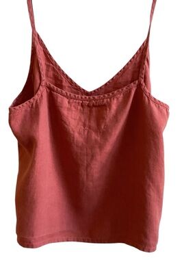 Nice thin strap 100% linen tank top is a loose style in a rust red color. Size L measures 23” from shoulder to hem and 21” across the chest. Good preowned condition.