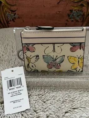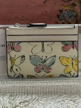 Coach Mini Skinny Id Case With Butterfly Print Chalk