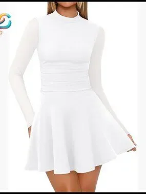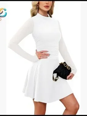 Style: Mock neck, long sleeves, mini length