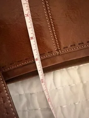 Fossil Brown Leather Shoulder Bag Tote Purse Vintage Cognac Zip Top
