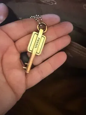 Beautiful genuine leather Fossil shoulder bag in a rich cognac brown color. Classic structured silhouette with contrast stitching and top zip closure. Includes original Fossil key charm.