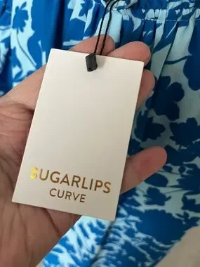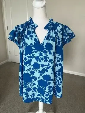 NWT Sugarlips Bright blue floral print tunic with a ruffled keyhole neckline. Flutter sleeves add feminine movement. Lightweight fabric drapes softly. Vibrant and beautiful.