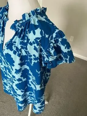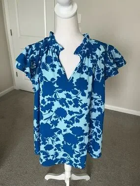 NWT Sugarlips Blue Floral Ruffle-Sleeve Women's Top Size 2X