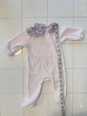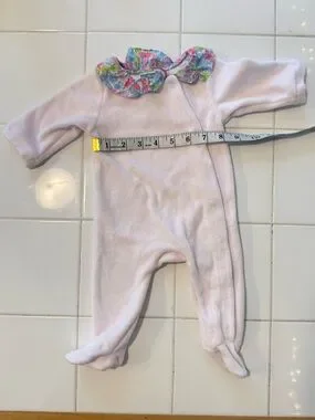 Jacadi Paris Baby Girl 3mo Pale Pink Velour Footed Onsie Floral Ruffle Collar