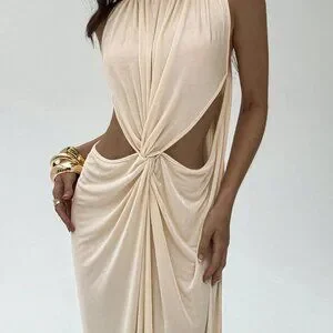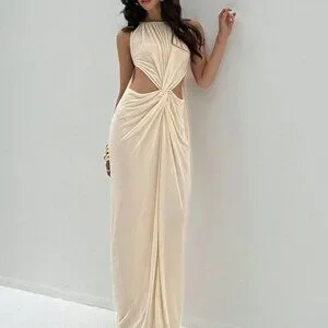 Apricot Elegant Women's Sexy Maxi Sleeveless Cutout Dress