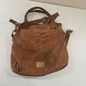Fossil Long Live Vintage 1954 Brown Leather Crossbody Satchel Bag Cognac