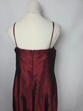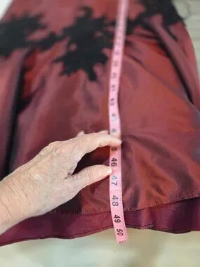 Rose Taft VTG Y2K Vamp Whimsigoth Silk Maxi Dress Burgundy Lace Appliqué Mermaid