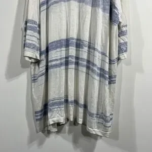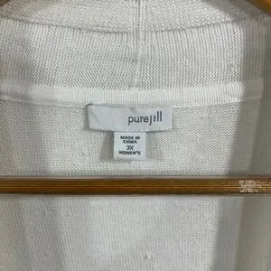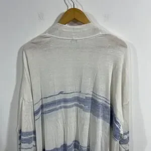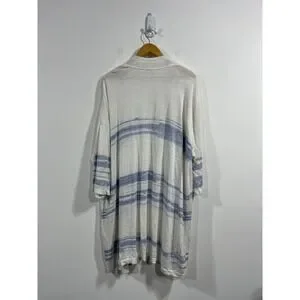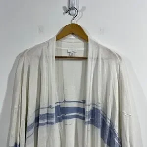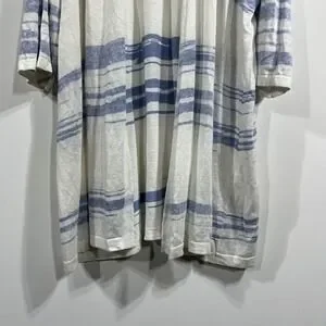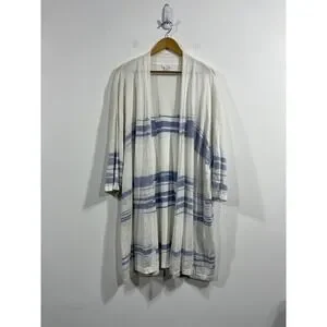 Pure Jill J. Jill Striped Linen Blend Open Front Long Cardigan Womens 3X Coastal