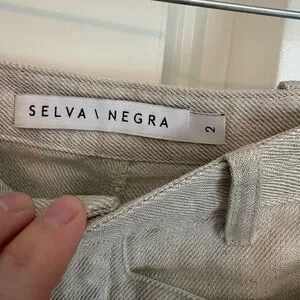 Selva / Negra Jessie linen utility pant in color ecru high rise wide leg size 2