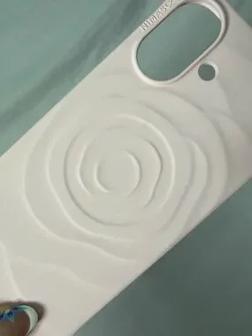 Protective soft silicone phone case in soft pink with raised rose relief texture. Flexible, slim design for easy on/off and a comfortable grip. Offers everyday protection against scratches and light impacts. Soft pink shade adds a subtle, feminine look.