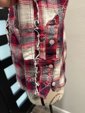 NWT-Free People Red Plaid Ruffle-Trim Button Down Shirt
