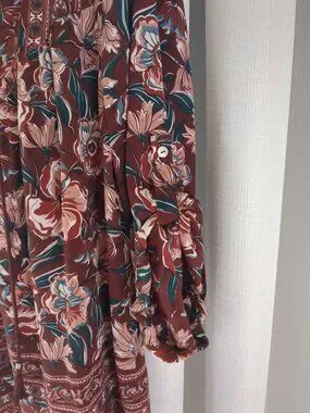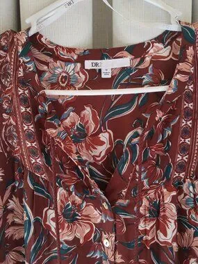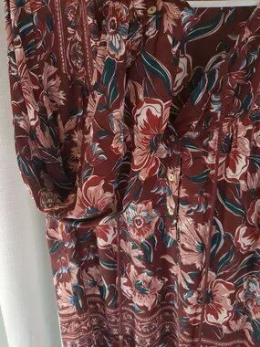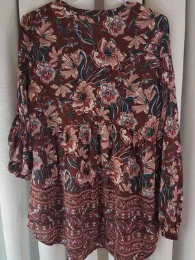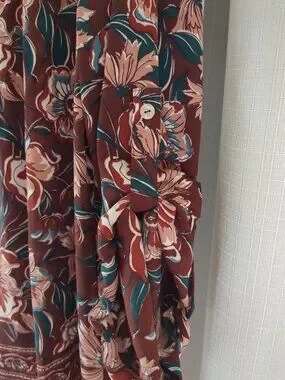 Med DR2 Floral Tunic / Blouse / Top with Button Long or Roll Up Sleeves