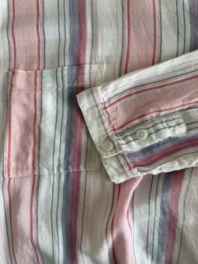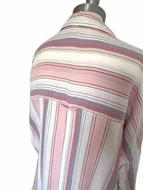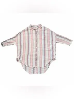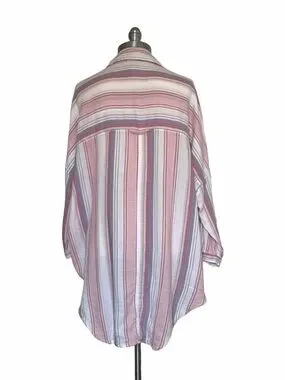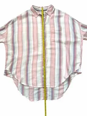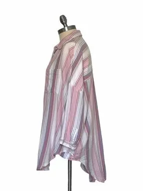 Elevate your casual wardrobe with this effortless Pilcro and the Letterpress by Anthropologie shirt. Featuring a relaxed, oversized fit and a breezy cotton-viscose blend, this piece is perfect for year-round comfort. The soft pastel stripes and high-low hem add a modern touch to a classic silhouette.