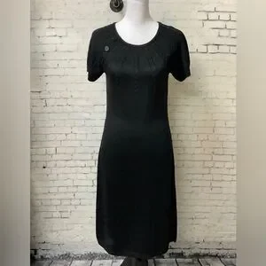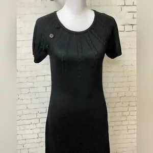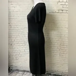 Calvin Klein Women Black BodyCon Sheath Wool Sweater Dress Cap Sleeve XS…