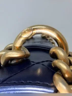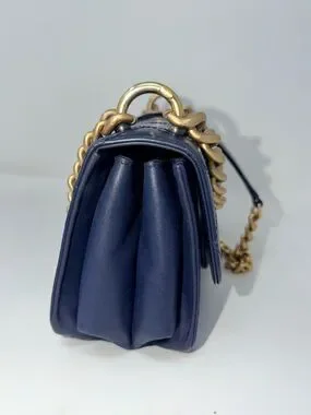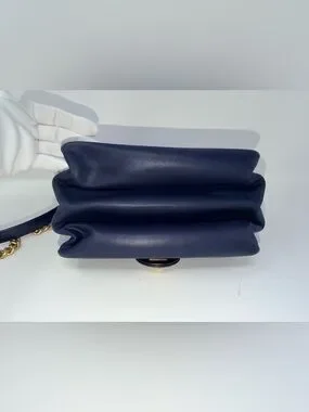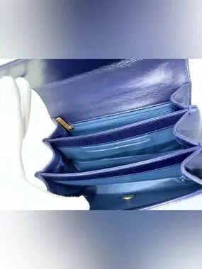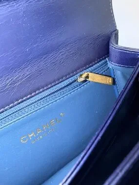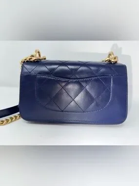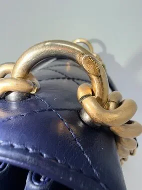 This lovely navy blue flap bag from Chanel is a timeless creation that will never fail to add a dash of charm to your outfits. It has been crafted from leather in the brand's signature quilt pattern and detailed with a front flap that carries the iconic CC twist-lock in gold-tone. The inside is a beautiful triple compartment? lined with leather, and a chain-link shoulder strap helps you carry it in style. I’m excellent condition with minor wear on the strap itself, but otherwise in excellent condition. See all photos as they serve as part of the description.