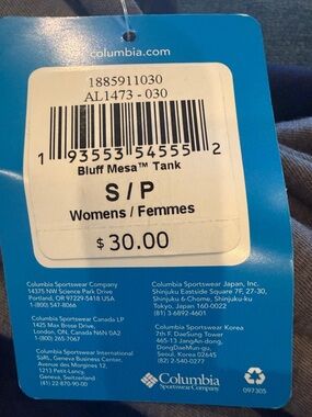 Sleeveless Columbia tank with bold floral line art. Lightweight and breathable for warm days. Simple crew neckline. Easy to pair with shorts or leggings.