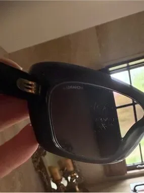 Authentic dark grey/black Chanel "Cat Eyes" frame, decorated with a gold CC logo on each side of the temples and very pretty white pearly pearls.