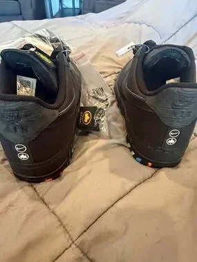 low-top Nike sneakers in solid black with a colorful speckled midsole. Lace-up closure for a secure fit. Padded collar for comfort. Durable rubber outsole with vibrant accents for playful style.