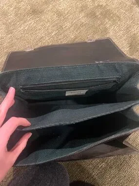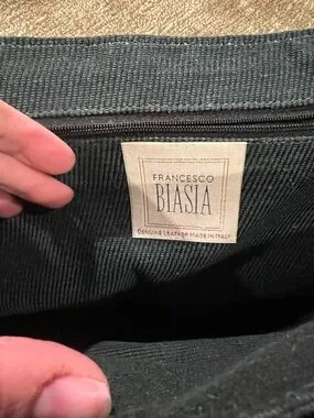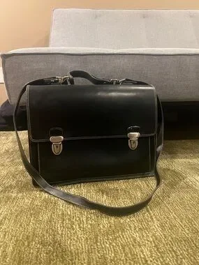 Black Leather Italian Messenger Bag with Silver Hardware