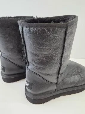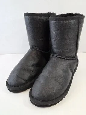UGG Australia Triana Seaweed Boots Womens Size 6 Black Leather Shearling