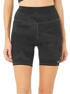 Alo Yoga High Waist Waisted Vapor Shorts In Black Camo 7” Inseam Size XXS