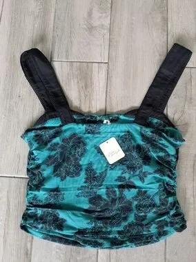 Free People Floral PrintTank Top in Teal and Black