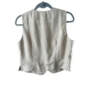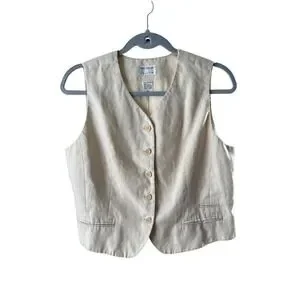 Preview Collection Vintage 100% Linen Vest Beige Button Front Waistcoat Large