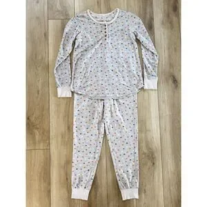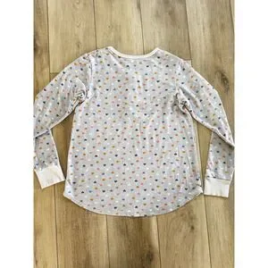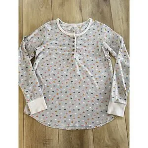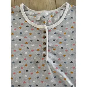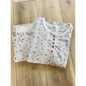 Cuddle Duds XS Gray Hearts Pajama Set Soft Ribbed Henley Joggers Pockets