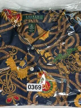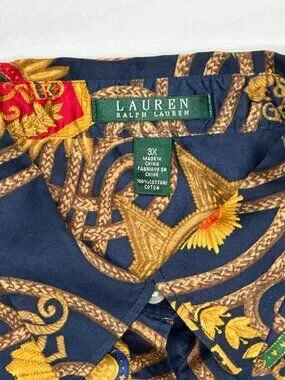 Lauren Ralph Lauren Women's 3X Shirt Crest Crown Gold Rope and Medallion AOP