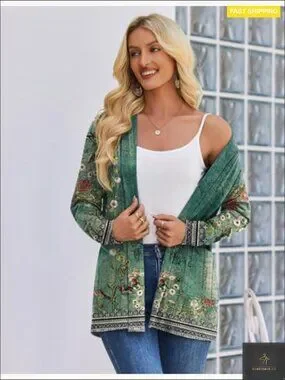 Style: Casual open-front kimono cardigan with long sleeves