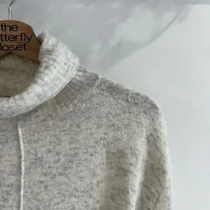 Athleta Transit Pullover Turtleneck Light Grey Heather Small KS