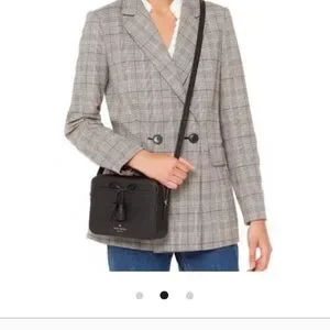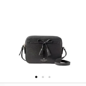 Chic black crossbody with tassel detail. Sleek design for everyday use. Signature Kate Spade style.