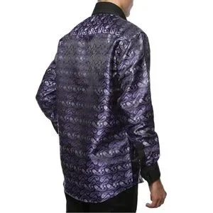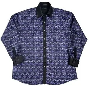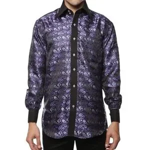 FERRECCI Men’s Satine Hi-1013 Purple & Black Flower Button Down Dress Shirt