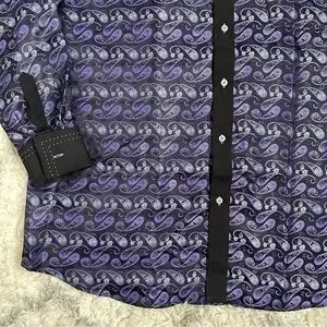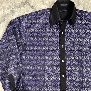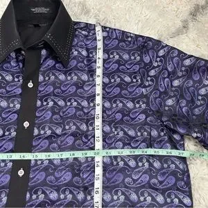 FERRECCI Men’s Satine Hi-1013 Purple & Black Flower Button Down Dress Sh…