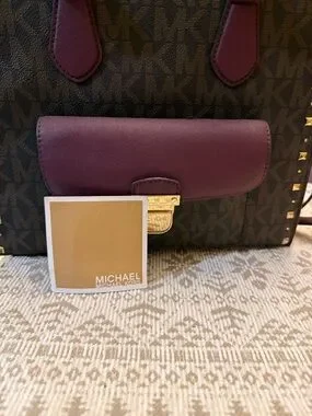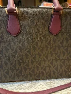 Rare Michael Kors Plum and Brown Signature Top-Handle Satchel with Gold Hardware