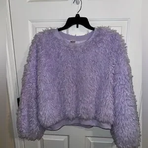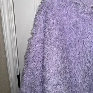 No Boundaries Yeti Faux Fur Purple Crew Neck Crop Plus 3X XXXL 21 Juniors. Ribbed neckline and waist, warm and fuzzy sweater in a super fun color of light purple or Lilac. Fully lined and in excellent condition, no flaws. P2P = 27, L = 24.