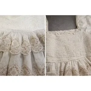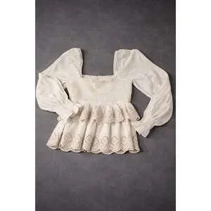 America Eagle Boho Ivory Smocked Peplum Blouse Square Neck Long Sleeve Top