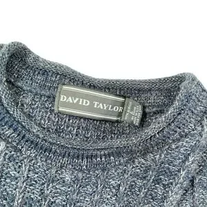David Taylor knit sweater features a classic crew neck and a striking colorblock design. This long sleeve top showcases a textured cable knit and geometric diamond pattern across the chest and sleeves. The blue and cream palette offers a versatile look for cooler weather. Ribbed cuffs and hem provide a comfortable fit. Perfect for layering or wearing on its own.