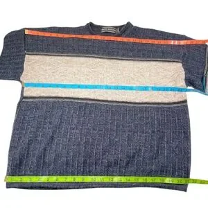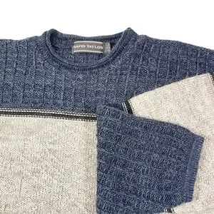David Taylor Large Blue Cream Knit Sweater Colorblock Geometric Grandpa Core